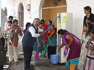 water is not 100% safe drinking water. In several villages, Villagepump 500 has been installed in
